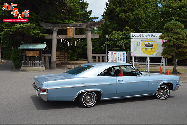 ※取材前日、クラシックカークラブ青森ミーティングin黒石こみせが開催されていた事もあり、クラシックカーと猿賀神社の写真が撮れました。かっこよかった!