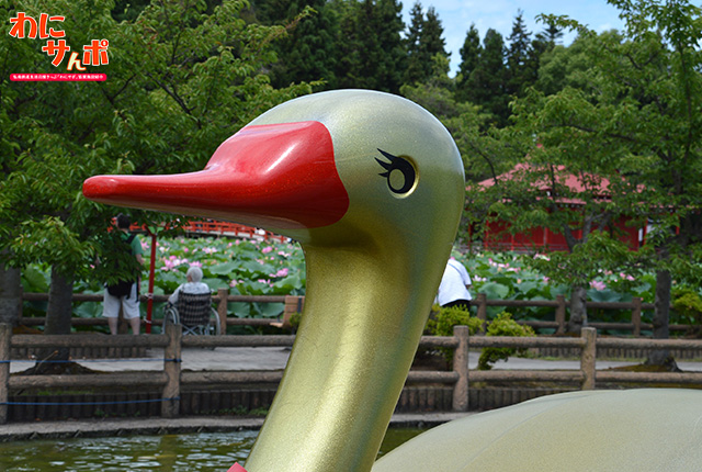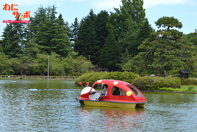 蓮の花が咲き誇る鏡ヶ池のお隣にある見晴ヶ池ではボート遊びをすることもできます!