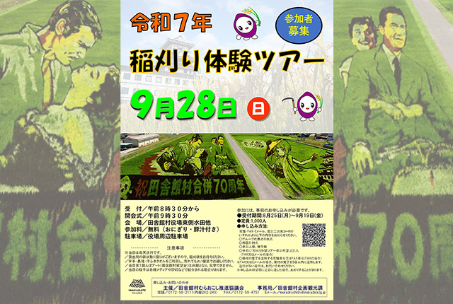 「田舎館村田んぼアート 稲刈り体験ツアー」が開催されます