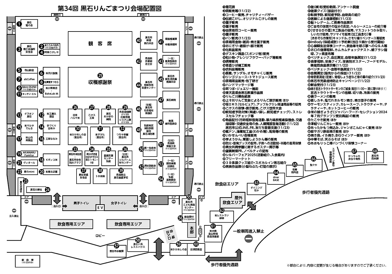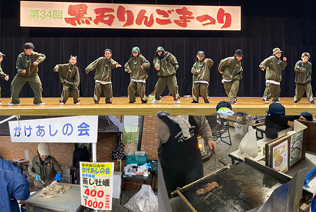 黒石市内のスポカルイン黒石を会場にりんごや地場産品、物産の販売をはじめ、各種団体の活動紹介、また姉妹都市岩手県宮古市の協賛特別企画として「磯ラーメンや、栗蒸しようかん、サーモンスティック、いかせんべいなど」気になるグルメが多数販売されるイベントです!