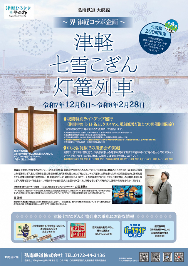 弘南鉄道大鰐線:津軽七雪こぎん灯篭列車に「お得に」乗ろう!