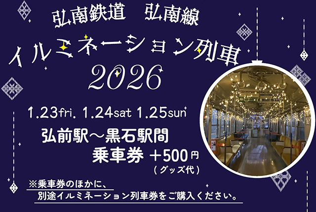 ・・・弘南線イルミネーション列車運行&冬の田んぼアート特別ダイヤ運行 2026/1/23~25