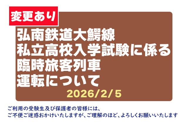 2026年2月5日(木) 私立高校入学試験に係る臨時旅客列車の運転につきましても、下記のように変更させていただきます