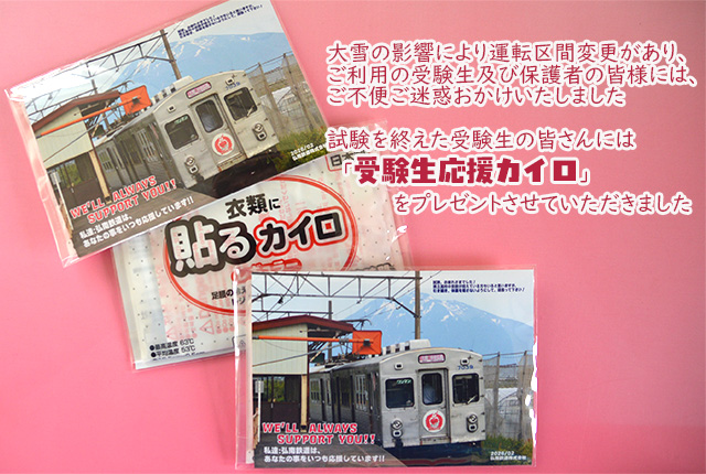 大雪の影響により運転区間変更があり、ご利用の受験生及び保護者の皆様には、ご不便ご迷惑おかけいたしました