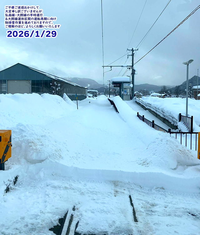 ご不便ご迷惑おかけして大変申し訳ございませんが、弘南線・大鰐線の平時運行&大鰐線運休区間の運転再開に向け除排雪作業を進めておりますので、ご理解のほど、よろしくお願いいたします